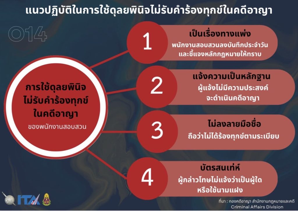 แนวปฏิบัติในการใช้ดุลยพินิจไม่รับคำร้องทุกข์ในคดีอาญา