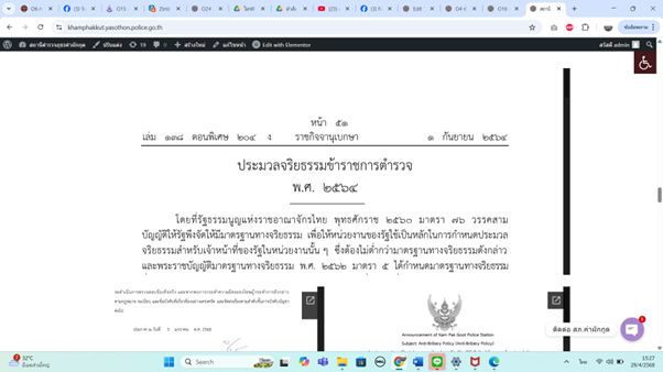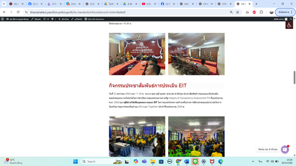 ให้เจ้าหน้าที่ที่ได้รับมอบหมายตามคำสั่ง จัดทำข้อมูลตามหัวข้อที่ได้รับมอบหมาย ตามคู่มือการประเมินและแบบฟอร์มที่กำหนด แล้วให้เจ้าหน้าที่เทคโนโลยีนำข้อมูลไปเปิดเผยลงในเว็บไซต์ของสถานีตำรวจ และศึกษาการเข้าใช้งานระบบ ITAP พร้อมบันทึกข้อมูลลงในระบบให้เรียบร้อย เริ่มดำเนินการได้ตั้งแต่บัดนี้จนถึงวันที่ 30 เมษายน 2568